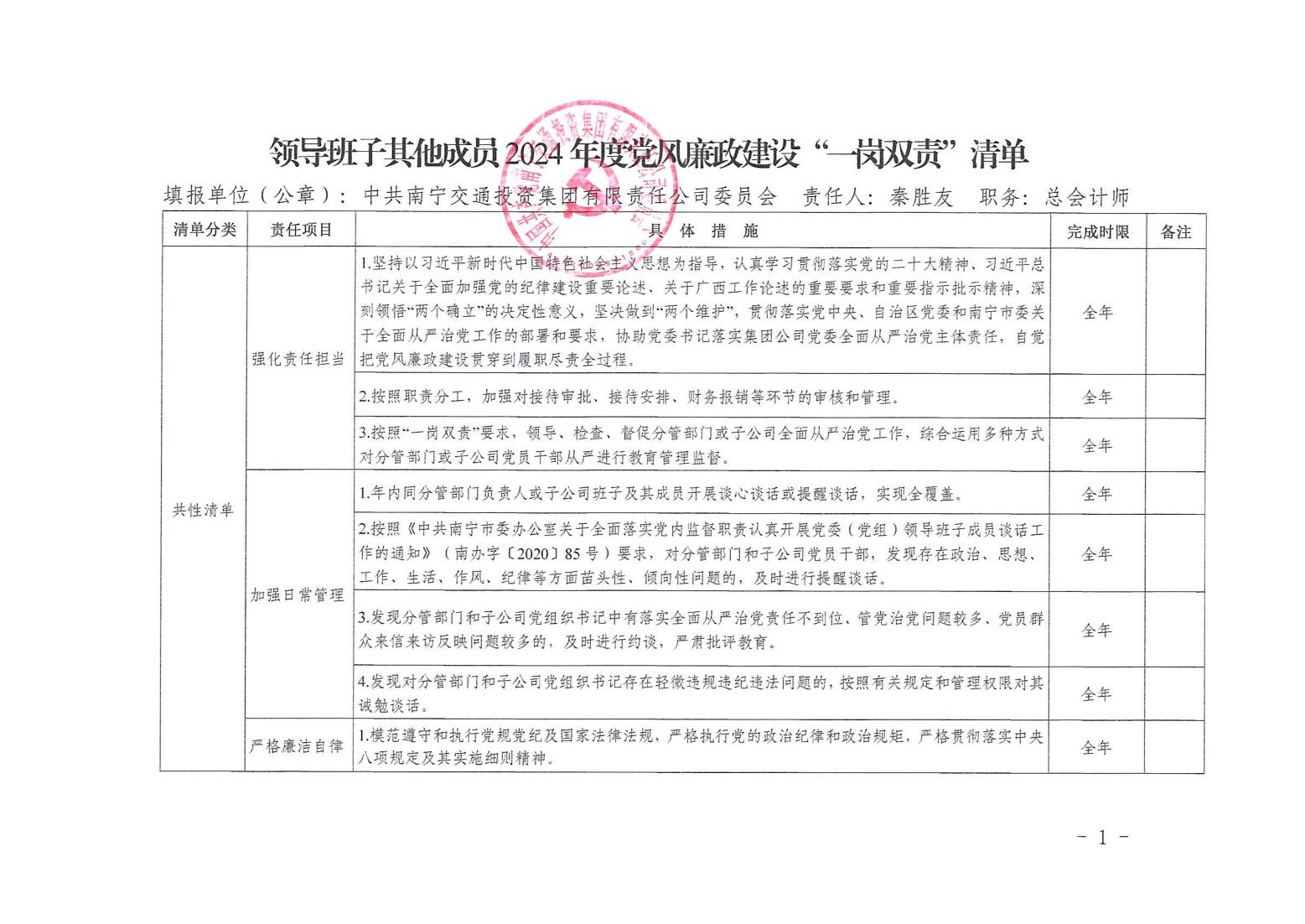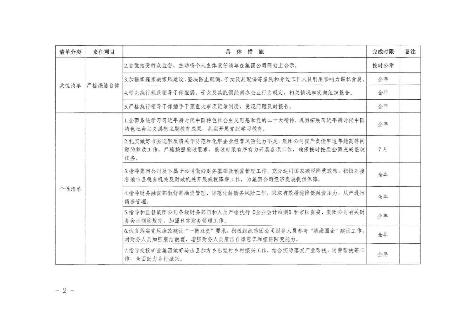 領(lǐng)導班子其他成員2024年度黨風廉政建設(shè)“一崗雙責”清單(六)