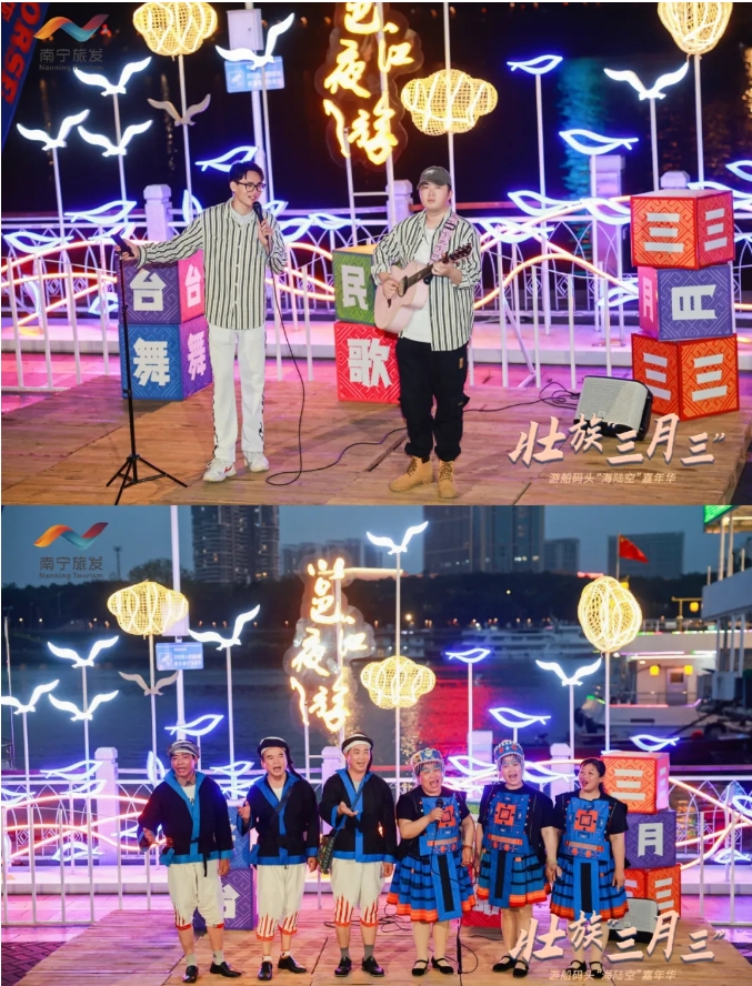 三月三期間,民生旅游碼頭邕江夜游項(xiàng)目推出穿民族服飾免費(fèi)乘坐特定航班、躉船民族服飾試裝區(qū)、演奏非遺獨(dú)弦琴、滑板+陸沖極限運(yùn)動(dòng)賽、潮流音樂(lè)精良打酒站、少兒鴻鵠樂(lè)坊快閃等精彩活動(dòng),讓市民和游客們?cè)谶@個(gè)廣西特有的節(jié)日里感受到了濃厚的民族文化氛圍和節(jié)日的歡樂(lè),成為了市民和游客們歡度佳節(jié)的熱門(mén)選擇,留下了美好的回憶。