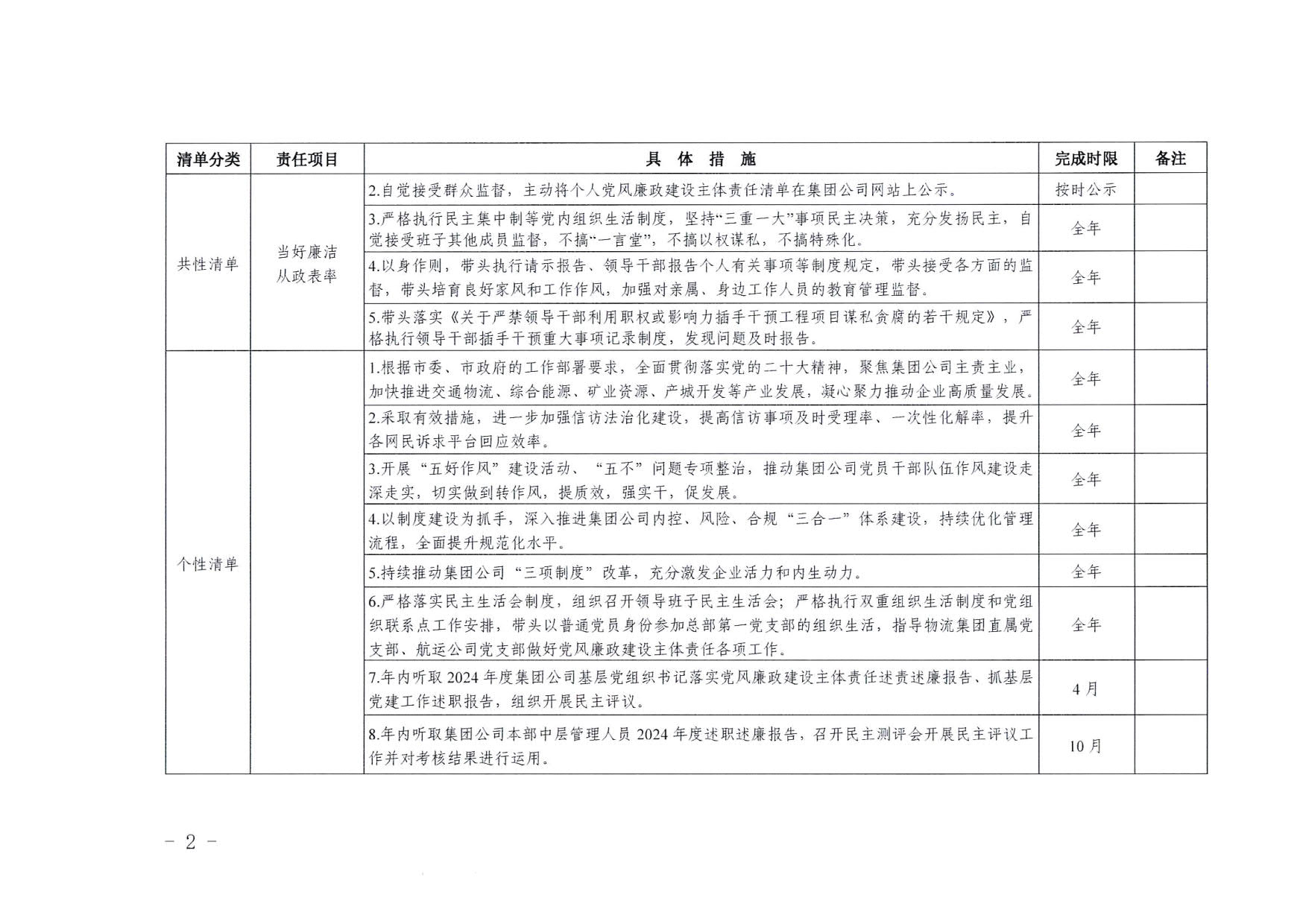 南寧交投集團領(lǐng)導班子其他成員2025年度黨風廉政建設“一崗雙責”清單(一)