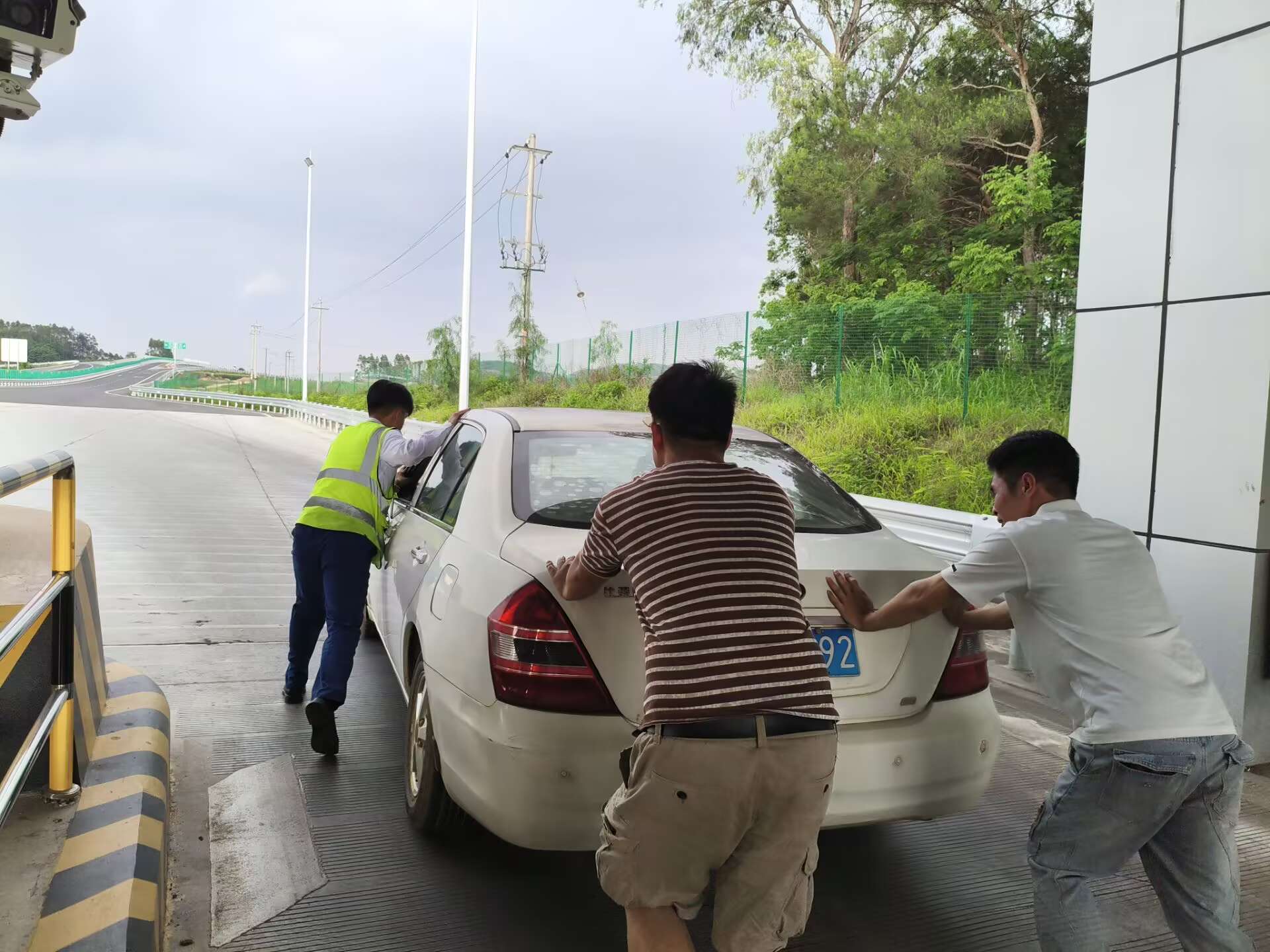 6月11日17時(shí)許,一輛白色轎車(chē)在途經(jīng)林橫高速陶圩收費(fèi)站完成繳費(fèi)后突發(fā)故障,引擎無(wú)法啟動(dòng)。當(dāng)班收費(fèi)員蔣雨潔與覃新恒見(jiàn)狀立即上前,并在第一時(shí)間將情況上報(bào)監(jiān)控中心,隨后幫助司機(jī)將車(chē)輛推至外廣場(chǎng)安全區(qū)域,保障了收費(fèi)現(xiàn)場(chǎng)車(chē)輛的順暢通行。此外,收費(fèi)員還主動(dòng)協(xié)助司機(jī)排查車(chē)輛故障。在收費(fèi)員的幫助下,車(chē)輛順利啟動(dòng),司機(jī)緊握收費(fèi)員的手連聲道謝:“十分感謝你們的幫助,為南寧高速的暖心服務(wù)點(diǎn)贊!”
